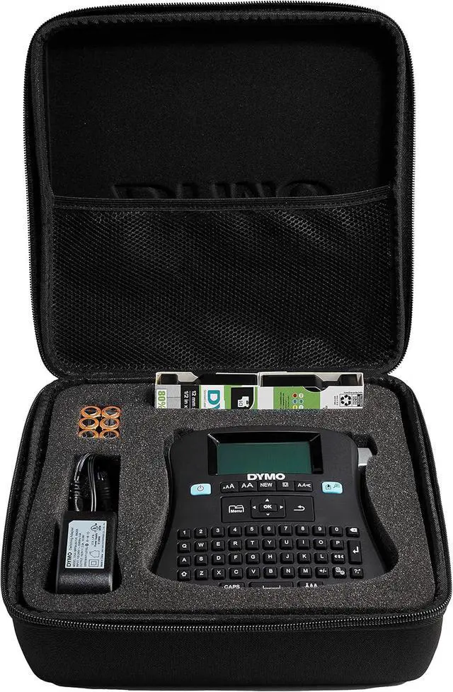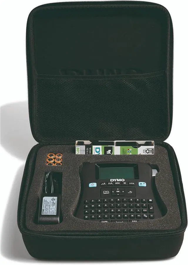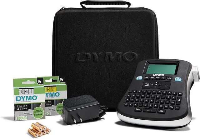 Experience labeling made easy for the entire office with the versatile DYMO LabelManager 210D Label Maker Kit. The large screen, convenient QWERTY keyboard, quick-access buttons and straightforward navigation make this label maker the perfect choice for your office. Meanwhile, the 6 font sizes, 7 text styles, 8 boxes and large variety of symbols help you keep everything organized. This complete kit includes everything you need including the label maker, label rolls, batteries, AC adapter and a storage case.