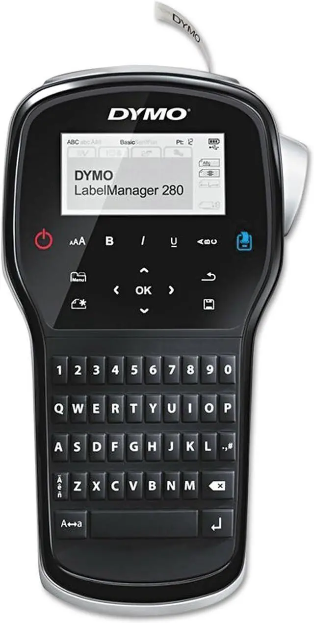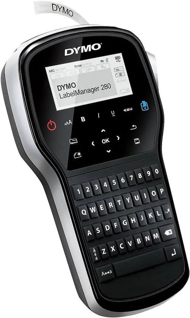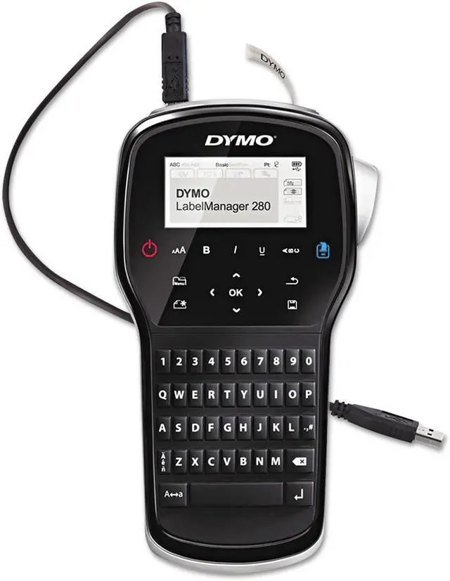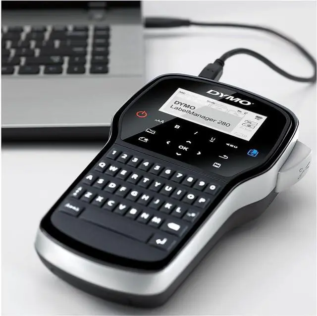 Description Quickly label files, tag equipment and make sure your gear is easily identifiable with this DYMO LabelManager 280 handheld label maker. Tap out clear, detailed labels that aid in organization no matter where you go with the freedom of a cordless design. 1-touch keys for fast formatting. QWERTY keyboard lets you type text quickly. PC/Mac connectivity offers expanded labeling options. DYMO LabelManager 280 label maker lets you create labels using your computer's fonts and graphics. Includes 3 built-in fonts in 6 sizes and 222 symbols for standalone, computer-free labeling. Rechargeable battery pack for convenient, on-the-go labeling. No need for disposable batteries. Recharges via AC adapter, included. Prints up to 50% faster than other DYMO label makers. Printing speed is 15 mm/sec. Great for labeling files, shelving, equipment and more. Uses DYMO D1 labels in widths up to 0.5".