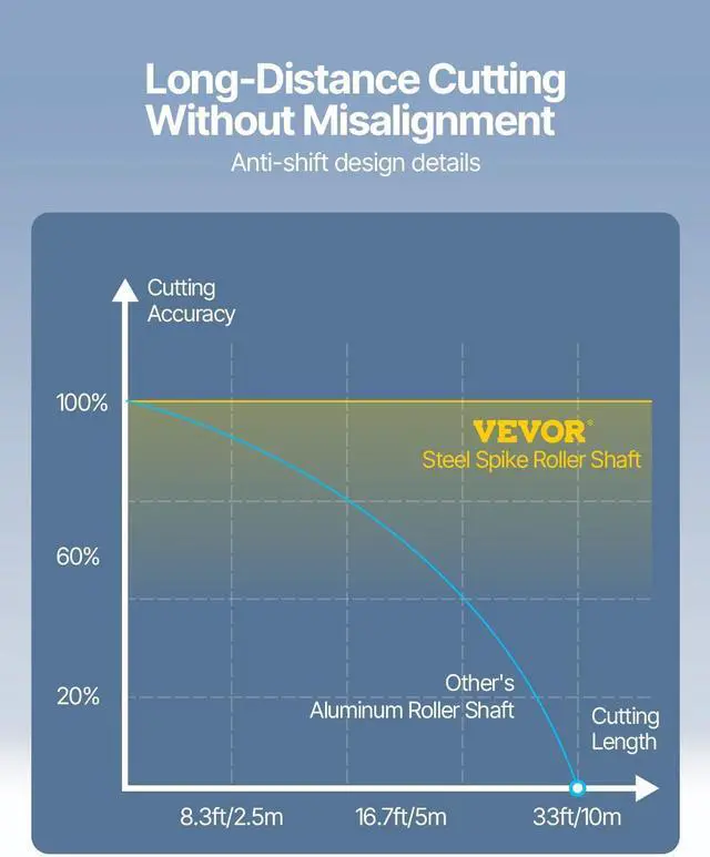 Super Precision: Compared with a traditional aluminum shaft, our steel-made shaft boasts a high accuracy, which won't deviate after the paper feeds up to 400 in / 10 m. This device will offer you a sensitive and intelligent operation with 10-500g cutting pressure, 10-800 mm/s cutting speed, and 0.0004 in / 0.01 mm blade accuracy. Feel every cut and achieve precise results.