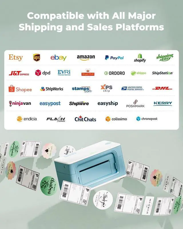 [High-Speed & Clear Printing] With 300 dpi resolution and advanced thermal printing technology, the MUNBYN wireless Bluetooth label printer can print at a speed of 180 mm/s (5000+ labels/day) without jamming. It supports label widths ranging from 1.57" to 4.3" (40-104mm), making it perfect for various label printing needs.