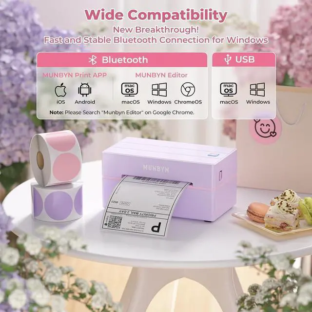 Bluetooth for Mobile Phone: MUNBYN RealWriter 130 Bluetooth label printer, supports Bluetooth connection for iOS and Android systems, and prints labels anytime, anywhere. Download the "MUNBYN print" app for quick and easy label printing.