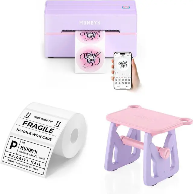 3-in-1 Label Holder: MUNBYN Label holder can store the printer and labels. The upper layer has holes on both sides to hide the power cord and provides a space to place label rollers, ensuring an organized workspace.