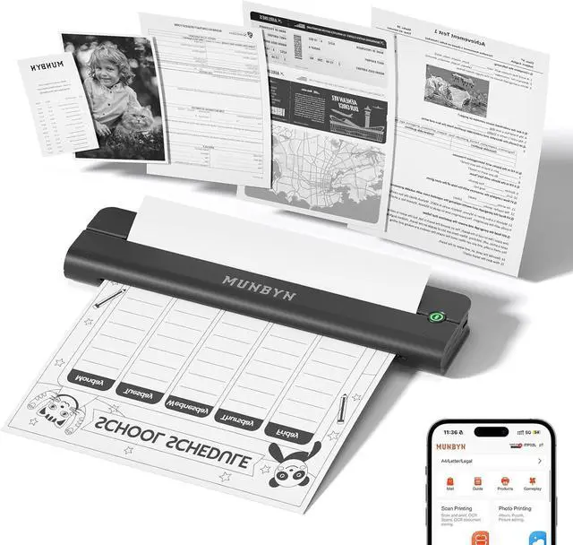 [Mobile Printer for Travel] Measuring just 11.22 x 4.13 x 2.56 in and weighing only 1.8 lbs, this MUNBYN printer is roughly the size of a water bottle.It slides effortlessly into your laptop bag, briefcase, or car glove box. This extreme portability empowers you to set up a mobile office instantlywhether you need to print invoices in a vehicle, contracts at a client's site, or assignments at school, making printing effortless in any scenario.