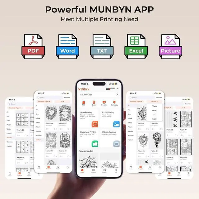 [Intuitive APP & Professional Support] Easily print PDFs, Word docs, and webpages via the user-friendly MUNBYN App. Bluetooth setup takes just seconds. We also provide technical support and responsive customer service. If you encounter any connection or setup issues, our team is ready to assist you anytime to ensure a smooth printing experience.
