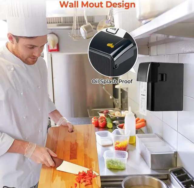 Wall-mounted Oil-proof Cover: Two hanging holes at the bottom. Wall/stand mounting options available to save space. The top comes with an oil-proof cap available in two colors (blue/black) to protect your receipts even in harsh environments. Large capacity, making it easier to change paper. Buzzer alarm lets you never miss an order even in noisy environments