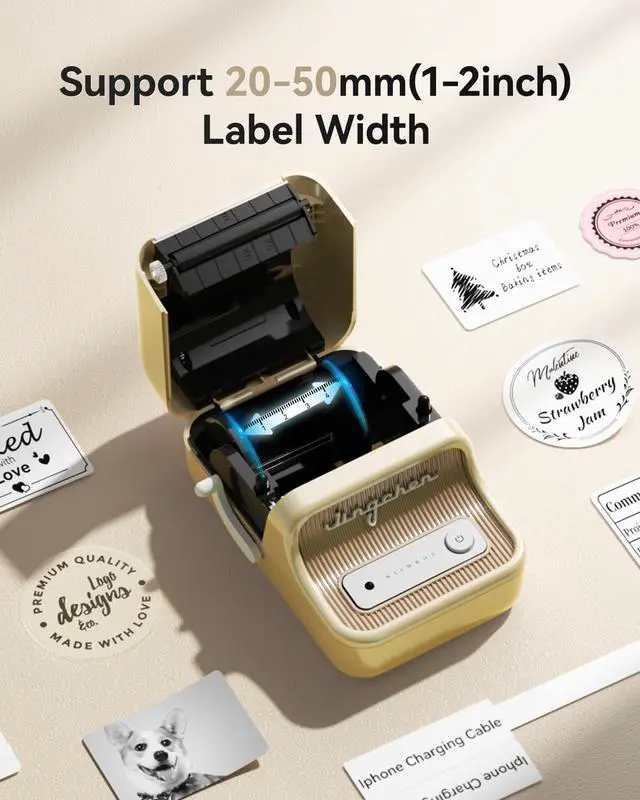 2 Inch Label Maker NIIMBOT B21 label printer label width range of is 20mm-50mm(0.8-2 inch).The effective printable width is 48mm. this label printer can be widely used in home organization like kitchen/pantry storage, and also good for business use like clothing tag, cottage food label, jewelry, gifts, mailing/ address. This B21 label maker machine comes with 1 roll of 50x30mm labels (230pcs/Roll) in the paper bin.