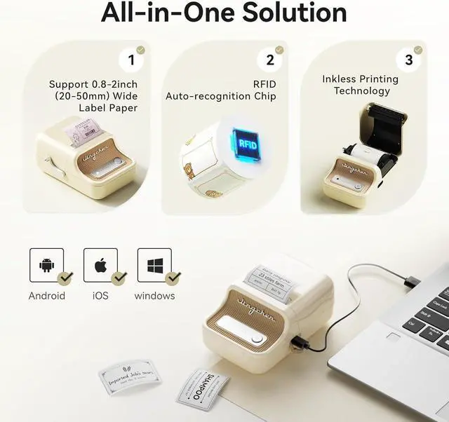 Better Print Quality: Print your customized labels through bluetooth connection, our B21 label printer doesn't require ink, toner, or ribbons, reduce consumable demand and save money. With adjustable Paper Holder & Automatic Label Identification Technology, this bluetooth label maker can prevent paper jams and deviations, provide superior print clarity, smooth printing effects and fast processing.