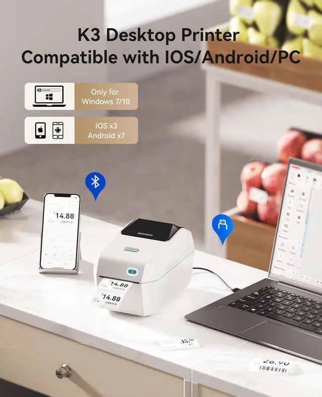 Shipping Thermal Label PrinterThis bluetooth label maker with a larger paper bin design. Not only it supports roll paper loaded inside, but also supports foldable thermal label paper.Multiple choices, as well as help you save desktop space, make your work more efficient and relaxed. (Warning: The K3 label maker only support label width 3.15'', not for 4''x6'' shipping label)