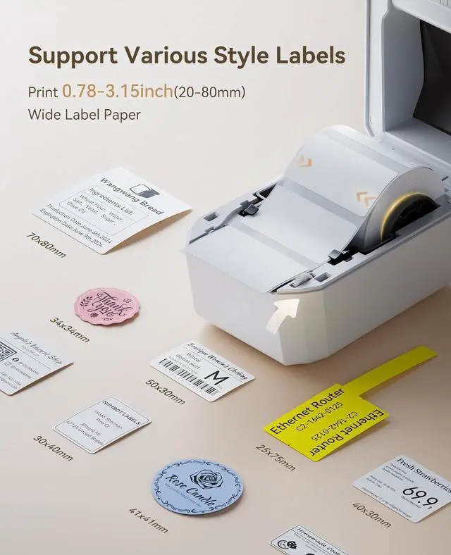 Efficient Wireless Label MakerThis 3 inch label maker can support the width of 1 - 3.15 inches labels.The thermal printing technology allows the label printer for small business to print at a max speed of 180mm/s. (You can use label paper of other brands, as long as the size is appropriate)