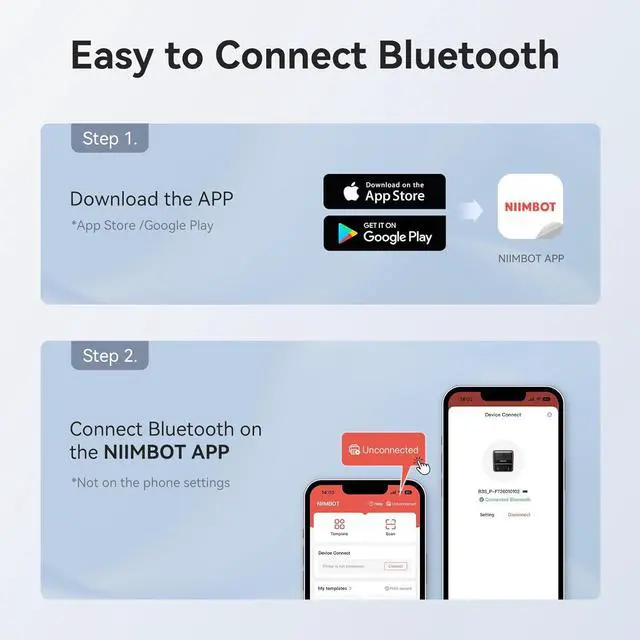 Easy to Connect -Install NIIMBOT App from APP Store & Google Play, then turn on B3S label printer and open bluetooth connection.Choosing and connecting printer model B3S from NIIMBOT APP, Then Enjoy Printing.