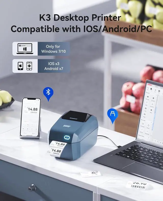 Compatible Bluetooth and USB ConnectionK3 label printer supports Android/iOS &PC, need to download driver and "NIIMBOT"APP. Note: All Bluetooth should be connected via the free NIIMBOT editing app(K3 label maker Only Support Windows System 7/10 Vesion for PC users).Not compatible with Pad, not recommended for use with Pad.