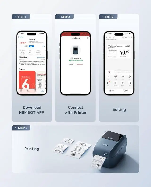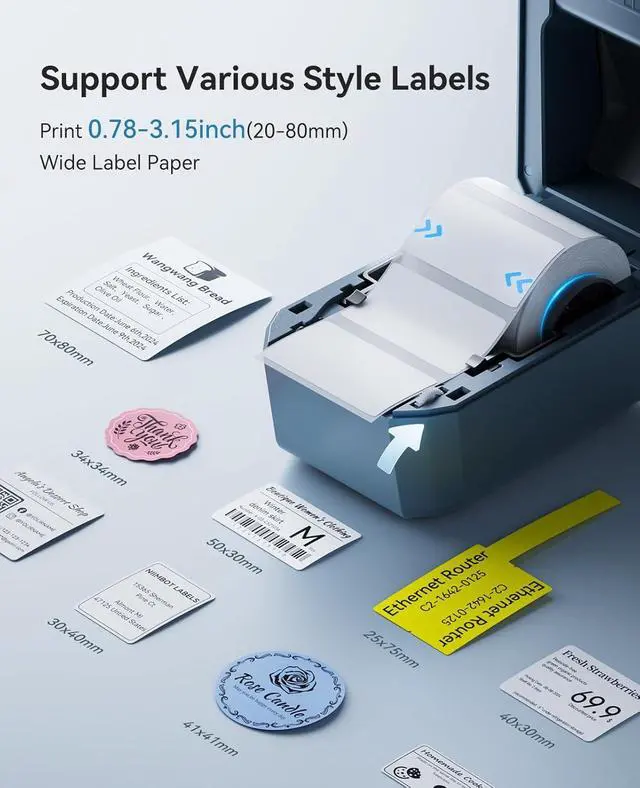Efficient Wireless Label MakerThis 3 inch label maker can support the width of 1 - 3.15 inches labels.The thermal printing technology allows the label printer for small business to print at a max speed of 180mm/s. (You can use label paper of other brands, as long as the size is appropriate)