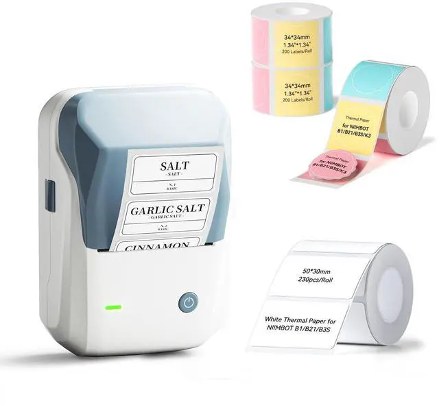 What You GetNIIMBOT B1 Label Maker +1 Roll 50*30mm White Tape+ extra 3 Rolls 34*34MM clor tape.