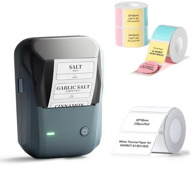What You GetNIIMBOT B1 Label Maker +1 Roll 50*30mm White Tape+ extra 3 Roll 34*34mm color tape.