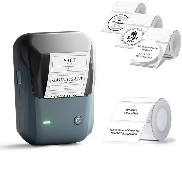 What You GetNIIMBOT B1 Label Maker +1 Roll 50*30mm White Tape+ extra 3 Roll 50*50mm Round white tape.