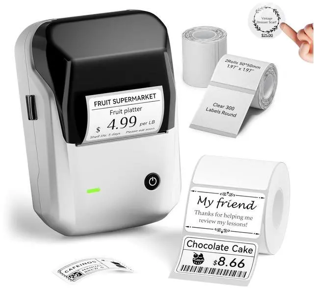 What You GetNIIMBOT B1 Label Maker +1 Roll 50*30mm White Tape+ extra 2 Rolls 50*50MM Round clear tape.