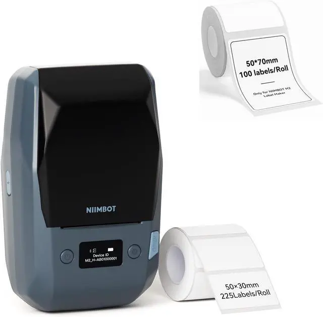 What You GetNIIMBOTM2 Label Maker +1 Roll 50*30 White Tape+ 50*70mm white labels.