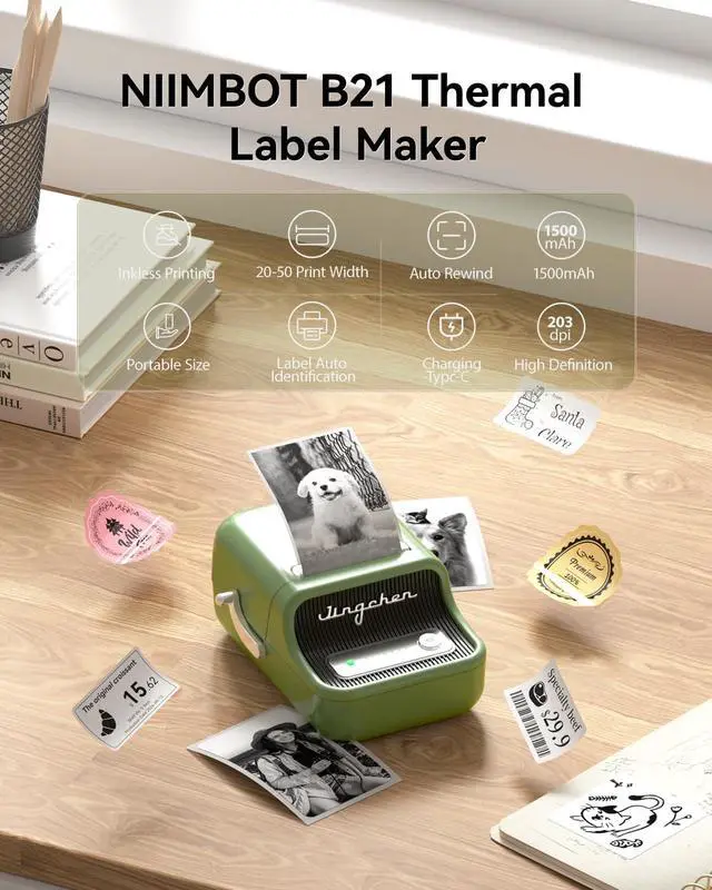 Fast Printing & Save MoneyWith the automatic label identification and label automatic alignment, NIIMBOT B21 label maker makes your printing more fast and more effective. Because of thermal printing, no need to use ribbon or toner, reduce consumable demand and save money.