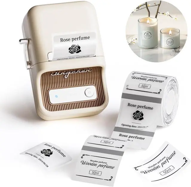 Multi-scene Use -- The B21 Portable Sticker Printer is widely used for labeling scented candles in various settings, such as candle jars, gift boxes, aromatherapy products, spa supplies, holiday decorations, and event favors. It can also be applied to home decor, personal relaxation spaces, luxury gift packaging, and seasonal gift items, ensuring a beautifully organized and fragrant environment.