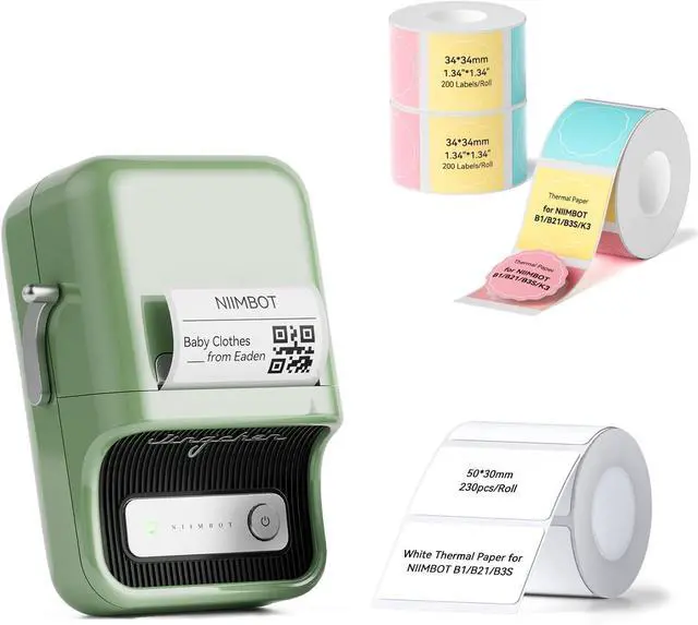 What You GetNIIMBOT B21 Label Maker +1 Roll 50*30mm White Tape+extra 3rolls 34*34mm color label tapes