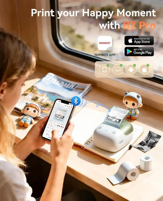 Multi-Device Compatible & Fully CustomizableNIIMBOT B2 PRO Bluetooth label maker works with iOS/Android & PC (PC needs official driver; no Pad support); the NIIMBOT app has 10+ fonts/languages, 100+ borders, 1500+ symbols, barcodes,QRs & supports timestamp, photo, OCR printcustom and print labels anywhere with this handheld maker via simple app connection