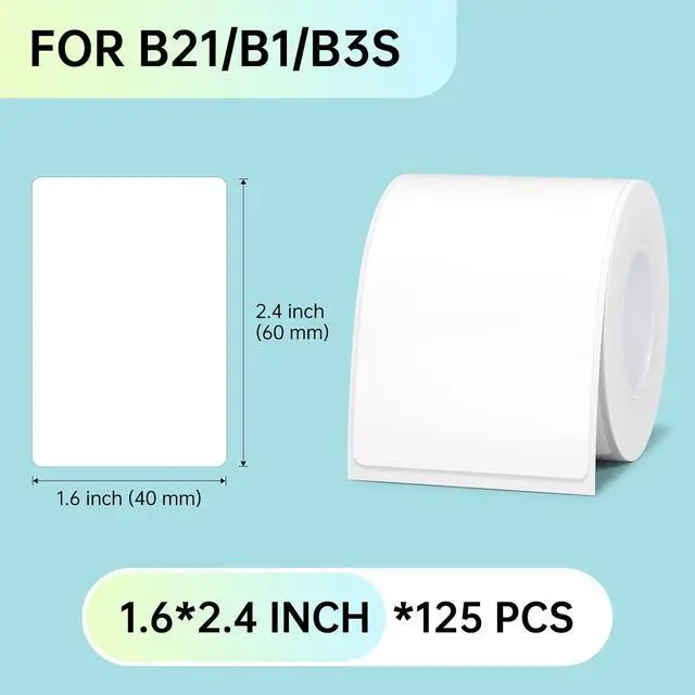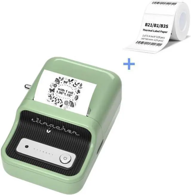 What You GetNIIMBOT B21 Green Label Maker +1 Roll 50*30mm White Tape+1 Roll+1 Roll 40*60mm White Tape