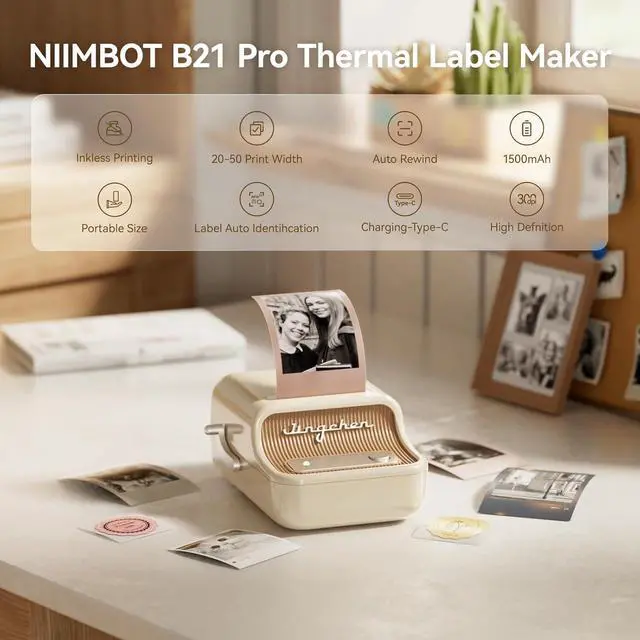 A Multifunction Label Printer: NIIMBOT B21 Pro bluetooth label maker machine supports label width from 20 to 50mm, perfect for home (kitchen food and spices jars, bottles,storage boxes, homemade food,return address), for small business (price,product info, QR code, barcode, brand logo,ads), for school (name tag, teacher fast feedback label,clothes label,cup label)