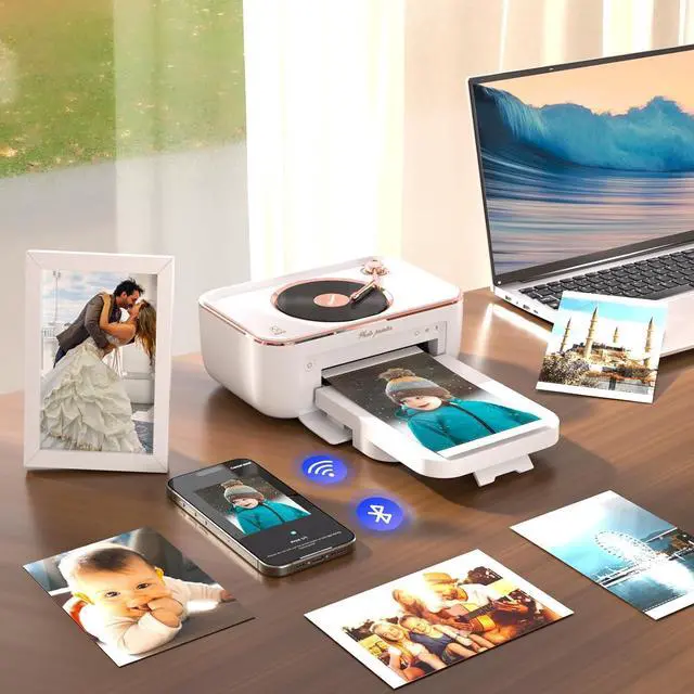 Great Quality 4x6 Photo Printer - The compact thermal dye-sublimation photo printer features advanced tech for 300 DPI resolution, paired with auto-lamination. It delivers vivid, lifelike colors while protecting prints against dust, fingerprints, and moisturepreserving every nuance with unmatched clarity, sharpness, and color intensity