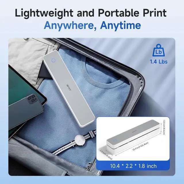 Ultra-Portable Design - The iDPRT portable thermal printer features a streamlined design, compact size, weighing only 1.4 pounds and measuring just 10.4 x 2.2 x 1.8 inches, making it easy to carry in your backpack, tote bag or briefcase, perfect for long commute times. Our portable document printer is a solid choice for anyone needing a reliable, portable printing solution. Great concept for on-go printing from anywhere needed, like if traveling for photos, work, business, office, home, car, or university.It great for business travelers, students, and remote workers.