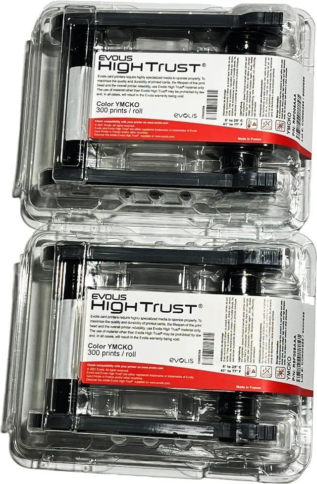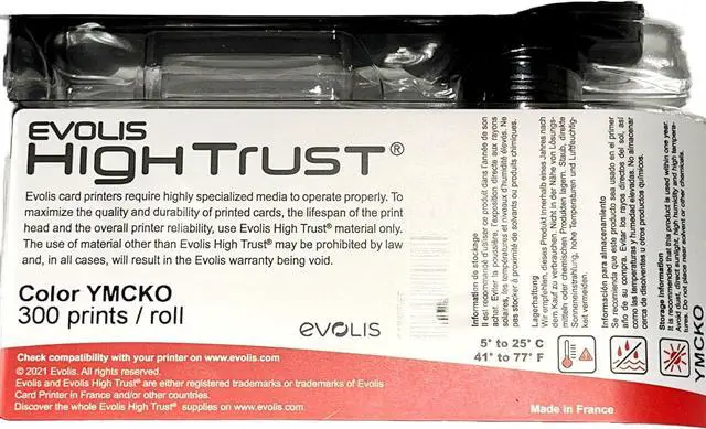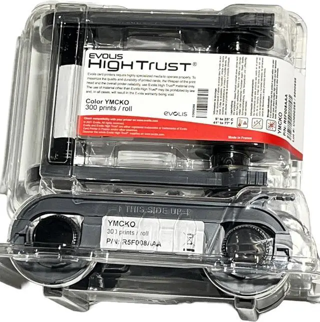Make your card printing experience seamless with the Evolis YMCKO Printer Ribbon, built to deliver exceptional performance in creating high-quality, full-color cards with impressive detail and precision. Compatible with Evolis Primacy and Elypso Card Printers (excluding Primacy 2), this ribbon printer ensures consistent results for businesses, schools, and organizations. It features yellow, magenta, cyan, and black color panels, along with a clear overlay (O) panel. The overlay not only enhances the appearance of your cards but also protects them from UV rays, scratches, and daily wear, keeping them looking great for longer. With the ability to produce up to 300 vivid, durable cards per roll, this reliable ID card printer ribbon is perfect for high-demand environments that require quality at scalewhether you're managing an office, organizing a major event, or handling school ID programs. The Evolis YMCKO Printer Ribbon ensures your cards are not only professional and long-lasting but also visually impressive. Enjoy hassle-free printing and consistently outstanding results with every card you create.
