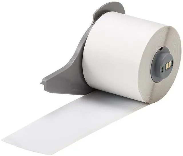 This B-595 vinyl material with permanent acrylic adhesive keeps labels adhered in harsh climates and is resistant to chemicals, oils and detergents