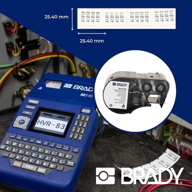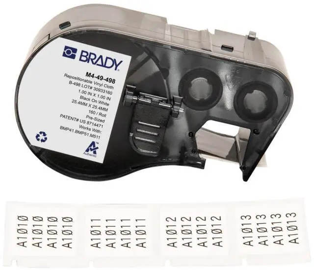 Brady Authentic (M4-49-498) Repositionable Multi-Purpose Vinyl Cloth Labels 1" H x 1" W Black on White, 160 Labels. for use with The BMP41, BMP51, and M511 Label Printers