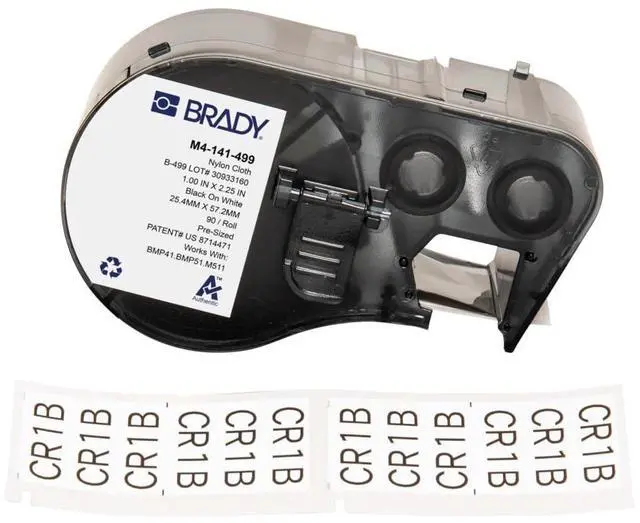 Brady Authentic (M4-141-499) Aggressive Adhesive Multi-Purpose Nylon Labels 2.25" H x 1" W Black on White, 90 Labels. for use with The BMP41, BMP51, and M511 Label Printers
