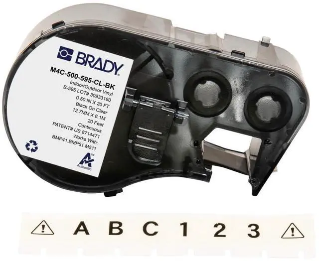 Brady Authentic (M4C-500-595-CL-BK) All-Weather Vinyl Labels 0.5 in W x 20ft Black on Clear. for use with BMP41, BMP51, M410, M510, and M511 Label Printers.