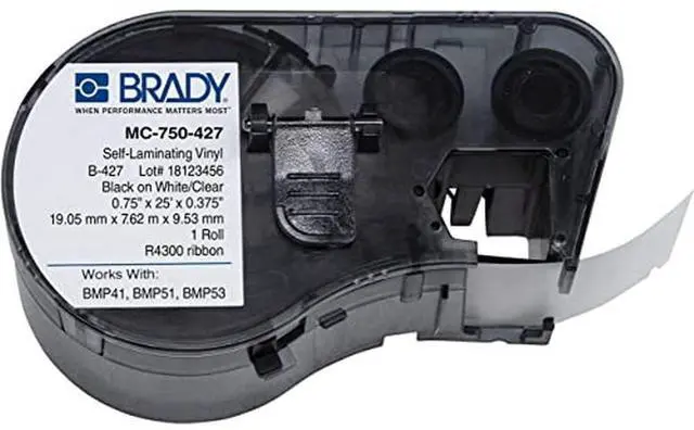 Brady - 143251 MC-750-427 Vinyl B-427 Black on White/Clear Label Maker Cartridge, 3/8" Width x 3/4" Height, For BMP51/BMP53 Printers