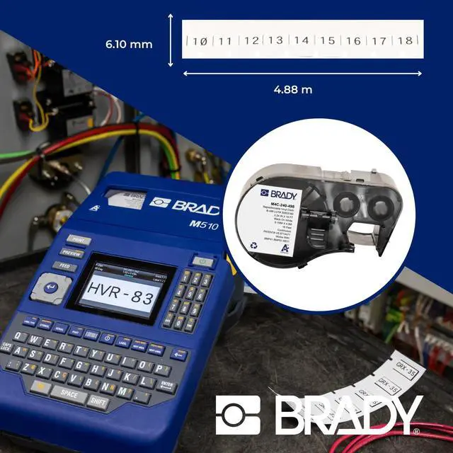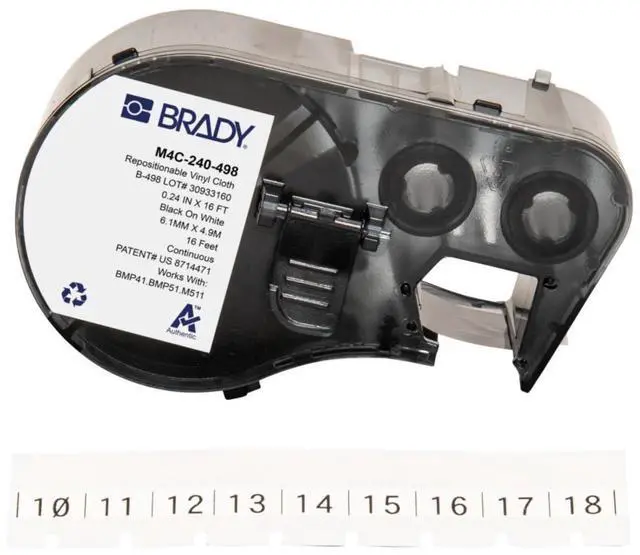 Brady Authentic (M4C-240-498) Repositionable Multi-Purpose Vinyl Cloth Labels 0.24" W x 16' L Black on White. for use with The BMP41, BMP51, and M511 Label Printers