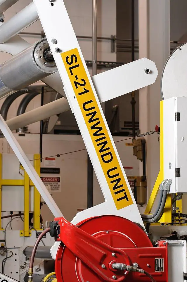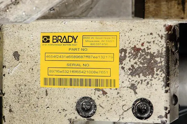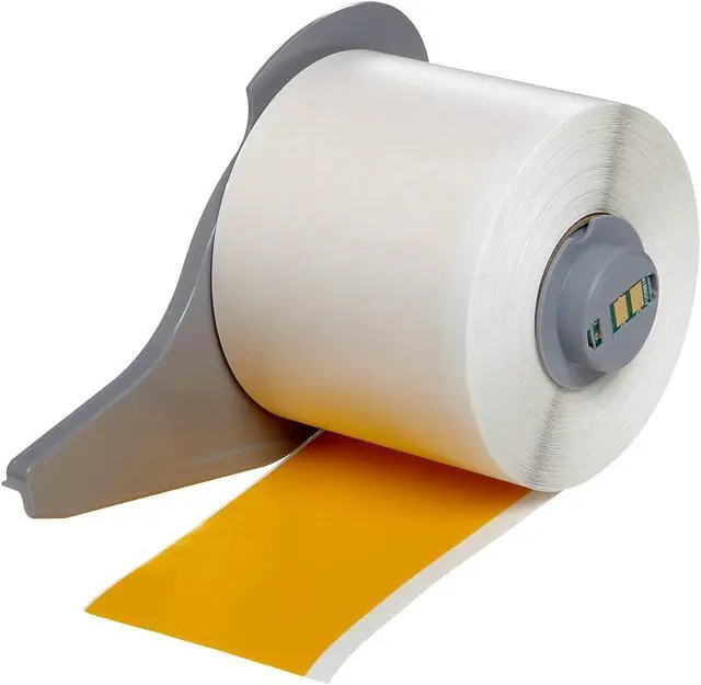 This B-595 vinyl material with permanent acrylic adhesive keeps labels adhered in harsh climates and is resistant to chemicals, oils and detergents