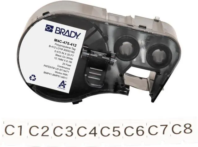 Brady Polypropylene Label Tape for Label Printer BMP41/BMP51/BMP53/M511 - Self Adhesive Printer Labels - Black on White (12,07 mm (W) x 6,10 m (L)) - M4C-475-412