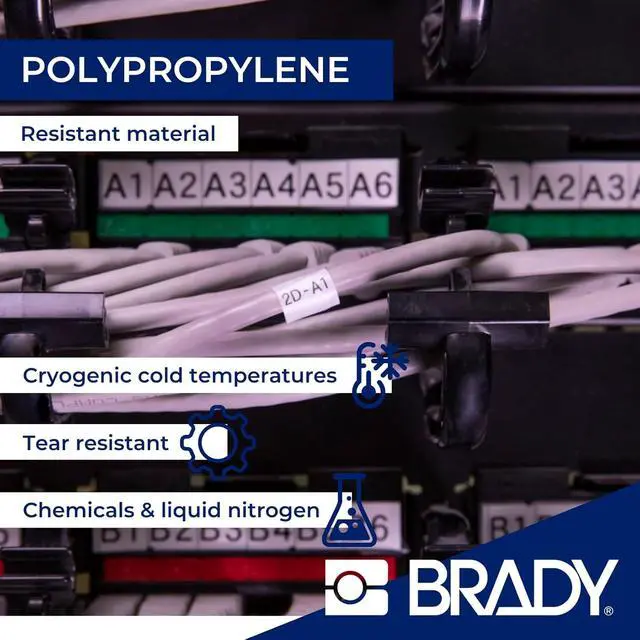 Specialised Designed for easily marking port, jack and outlet faceplates Tough Resistant to tearing, fuels, oils, chemicals and extreme temperatures Non-adhesive Easy to place, remove and replace as needed Certified RoHS compliant to 2005/618/EC MCV
