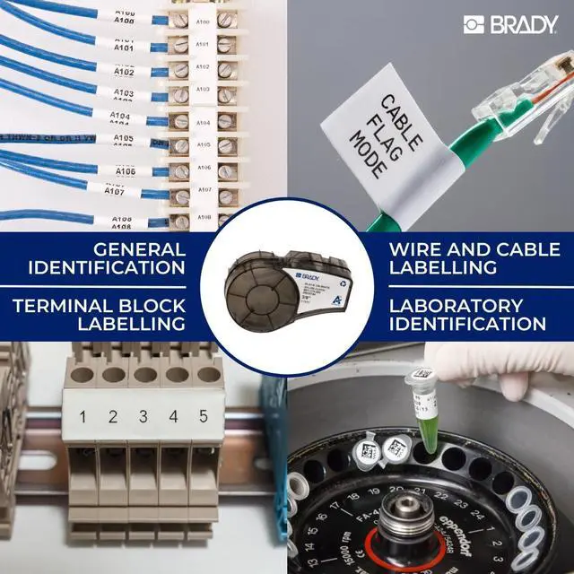 Product 2: Nylon cloth tape with multiple use cases including cable and wire labeling, general-purpose marking of laboratory items, equipment panels, and face plates