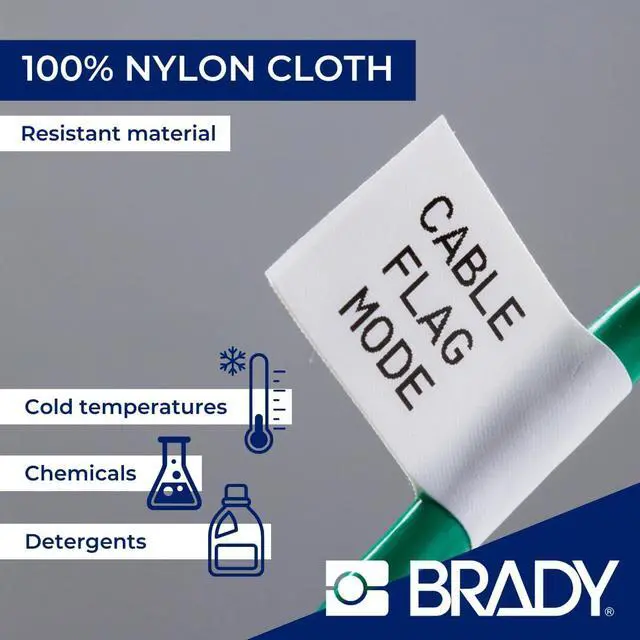 Product 2: Made from Brady's B 499 Nylon Cloth material, which has a protective polyamide coating and permanent acrylic adhesive that keeps tape adhered to surfaces, even in autoclave, freezer, and liquid nitrogen environments