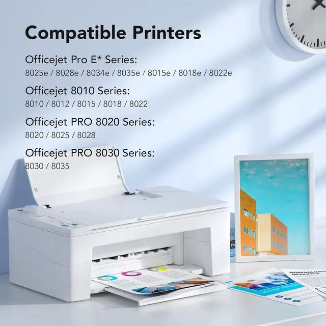 PRINTER MODEL: Works with *E Series Printers: Compatible with OfficeJet 8015e / 8022e / 8010e / 8012e / 8014e ; Compatible with OfficeJet Pro 8025e / 8028e / 8035e / 8020e / 8024e Printers