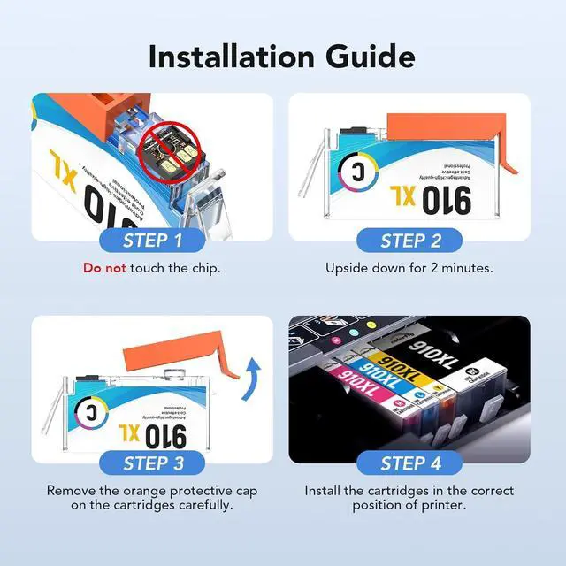 Cartridges compatibility: 910XL ink cartridges are compatible for 910 ink 910XL cartridges (Not original)