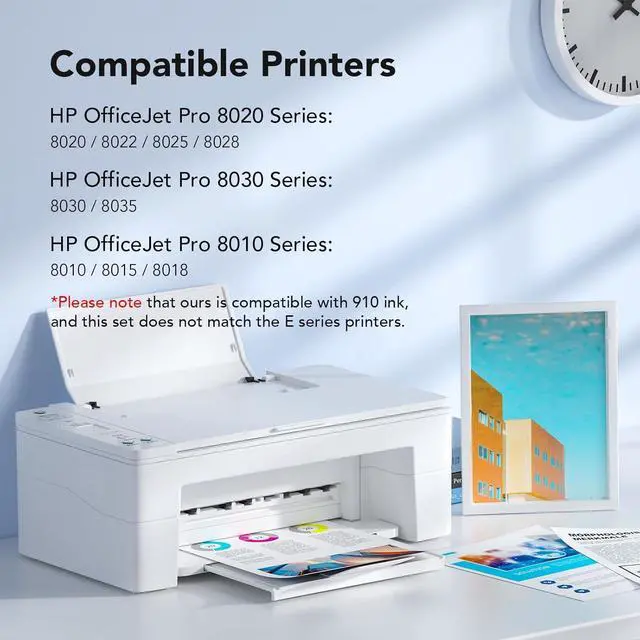 Cartridges compatibility: 910XL ink cartridges are compatible for 910XL 910 ink cartridges (Not original)Printer compatibility: colorfly 910XL compatible ink cartridges work with printer OfficeJet 8010 8012 8013 8015 8020 8022, OfficeJet Pro 8020 8021 8022 8023 8024 8025 8026 8028 8030 8035 (Warm tips:NOT compatible with HP+printers:8010e 8012e 8013e 8015e 8020e 8021e 8022e 8023e 8024e 8025e 8026e 8028e 8030e 8035e)