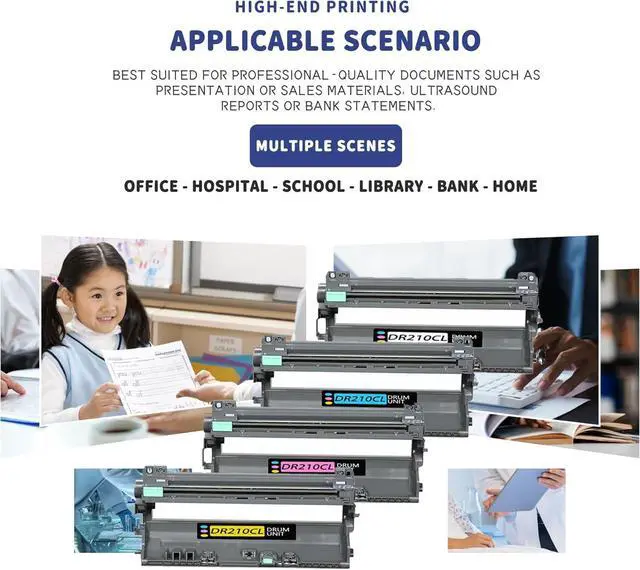 Include: 4 Pack DR210CL Drum Units Compatible for 1 BK/C/M/Y.