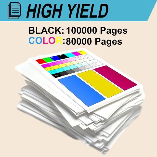 High Page Yield: Black Drum Unit delivers an impressive 100000 pages, while the color Drum Unit produces vibrant prints across 80000 pages maximizing your printing efficiency