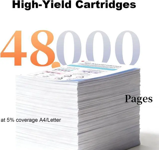 High Page Yield : Up to 48,000 pages per black drum unit,48,000 Pages per cyan magenta yellow at 5% coverage on letter a4