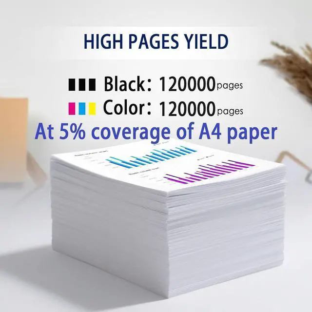 [High Page Yield] Prints up to 120000 pages per black cartridge(at 5% coverage),120000 pages per color cartridge(at 5% coverage) ideal for office, home, and school use.