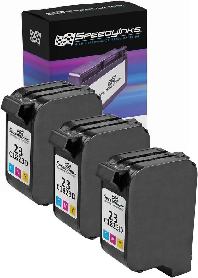 3PK Remanufactured Replacement Ink Cartridge for Hewlett Packard C1823D (HP 23) Tri-Color for use in HP OfficeJet R40, HP OfficeJet T45, HP OfficeJet T45xi, HP OfficeJet T46, HP OfficeJet R60, HP OfficeJet T65, HP OfficeJet T65xi, HP OfficeJet R80, HP Color Copier 140, HP Color Copier 145, HP Color Copier 150, HP Color Copier 155, HP Color Copier 160, HP Color Copier 170, HP PSC 500, HP PSC 500xi, HP Deskjet 710, HP Deskjet 710C, HP Deskjet 712C, HP Deskjet 712, HP Deskjet 720, HP Deskjet 720C, HP Deskjet 722C, HP Deskjet 722, HP Deskjet 782C, HP Deskjet 782, HP Deskjet 810C, HP Deskjet 810, HP Deskjet 812, HP Deskjet 812C, HP Deskjet 830C, HP Deskjet 830, HP Deskjet 832, HP Deskjet 832C, HP Deskjet 880, HP Deskjet 880C, HP Deskjet 882C, HP Deskjet 882, HP Deskjet 890, HP Deskjet 890C, HP Deskjet 890cxi, HP Deskjet 890Cse, HP Deskjet 895Cxi, HP Deskjet 895, HP Deskjet 1120C, HP Deskjet 1120cse, HP OfficeJet 1170C, HP OfficeJet Pro 1170C, HP OfficeJet Pro 1170Cse, HP OfficeJet Pro 1170Cxi, HP OfficeJet 1170, HP OfficeJet Pro 1170, HP OfficeJet Pro 1175, HP OfficeJet Pro 1175C, HP OfficeJet Pro 1175Cxi, HP OfficeJet Pro 1175Cse, HP Deskjet 1120cxi, HP Deskjet 895cse, HP Color Copier 260, HP Color Copier 270, HP DeskJet 815, HP DeskJet 815C