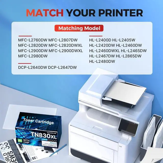 • Latest Chip Verison:Our tn830xl tn830 uses the latest upgraded chip to ensure compatibility with tn830xl toner for brother printer
